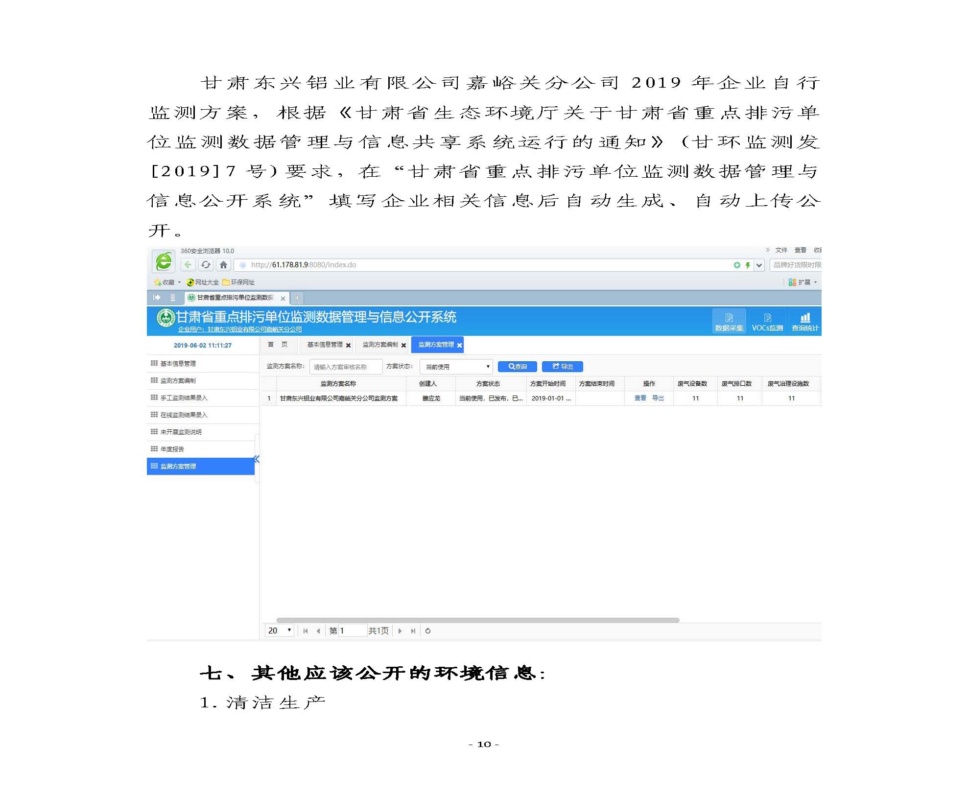 甘肅東興鋁業(yè)有限公司嘉峪關(guān)分公司2019年度環(huán)境信息公開