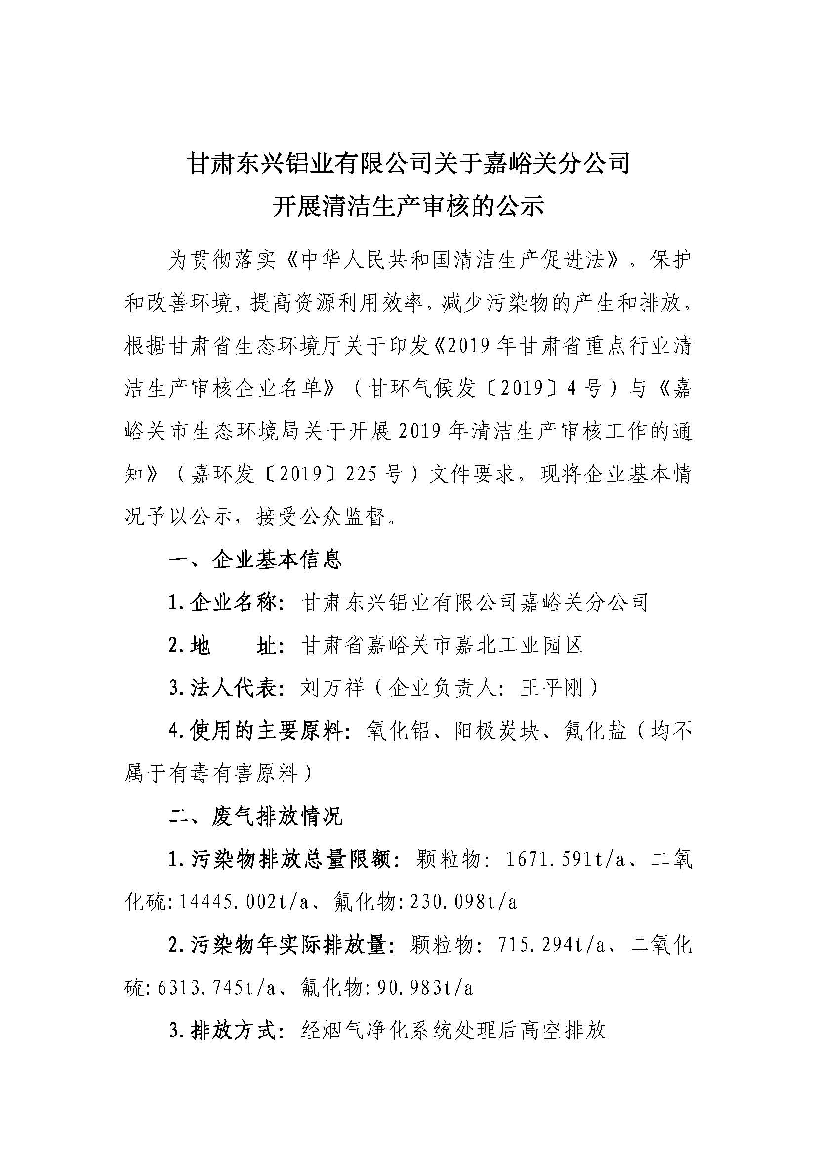 甘肅東興鋁業(yè)有限公司關于嘉峪關分公司開展清潔生產審核的公示