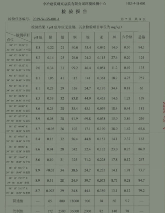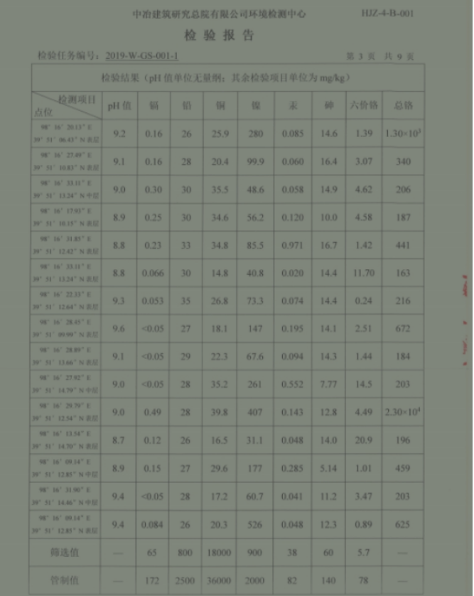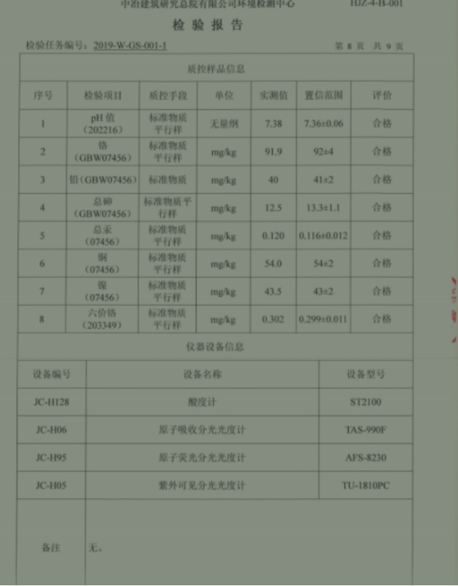 | 監(jiān)測時間 | 2019年3月21日 | 監(jiān)測項目 | PH、鎘、鉛、銅、鎳、汞、砷、六價鉻、總鉻 | |