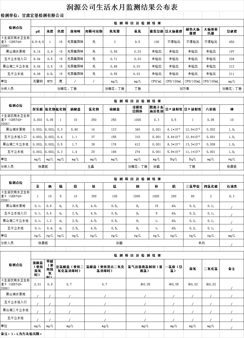 潤源公司生活水月監(jiān)測結(jié)果公布表