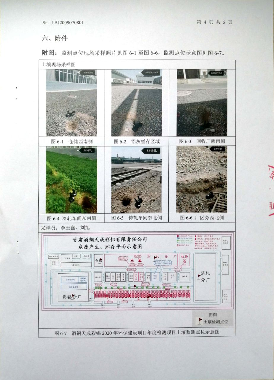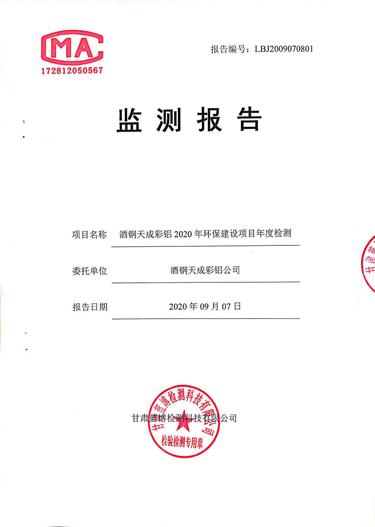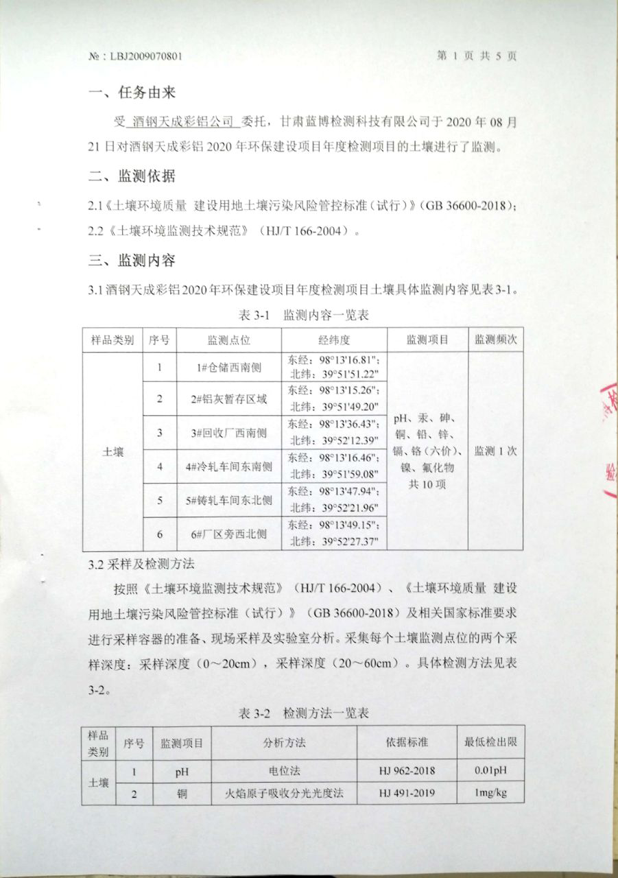 | 監(jiān)測數(shù)據(jù) | 詳見甘肅酒鋼天成彩鋁有限責任公司2020年土壤環(huán)境檢測報告,批號:LBJ2009070801 | |||